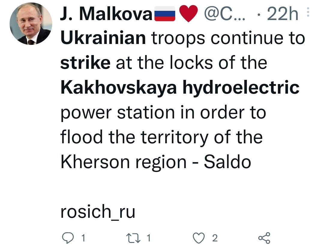 Seems alot of "people" seem to know exactly what will "happen" to a large Ukrainian dam of which it's destruction would just happen to hide thousands of Russian war crimes under water.