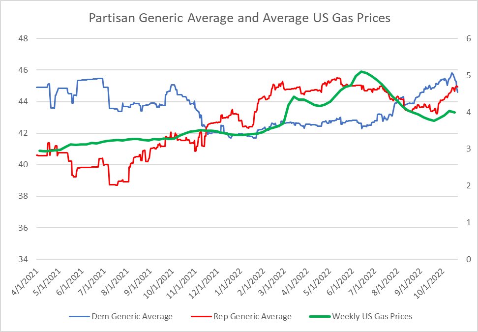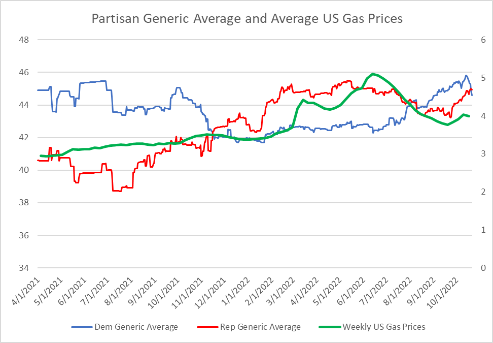 There is no overwhelming, predictable relationship between partisan generic ballot and average gas prices. It just doesn't exist.