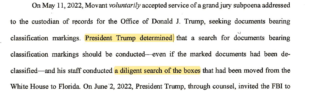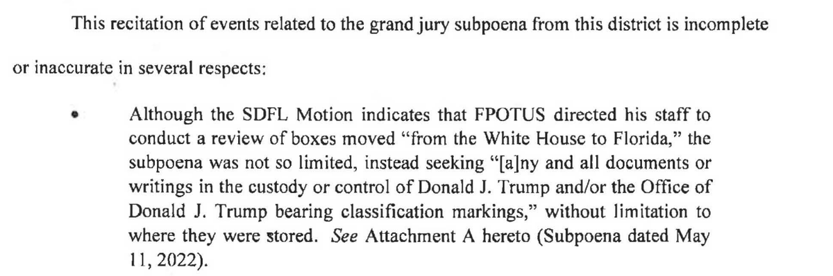 3/ DOJ previously called out Trump for saying diligent search was carried out in Florida, and not other states.👇
