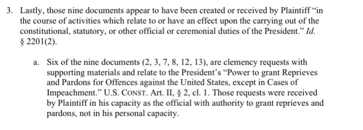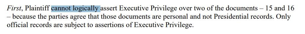 2. As Judge Dearie signaled, Trump's counsel are claiming that documents that they and DOJ agree are PERSONAL records are subject to executive privilege.
