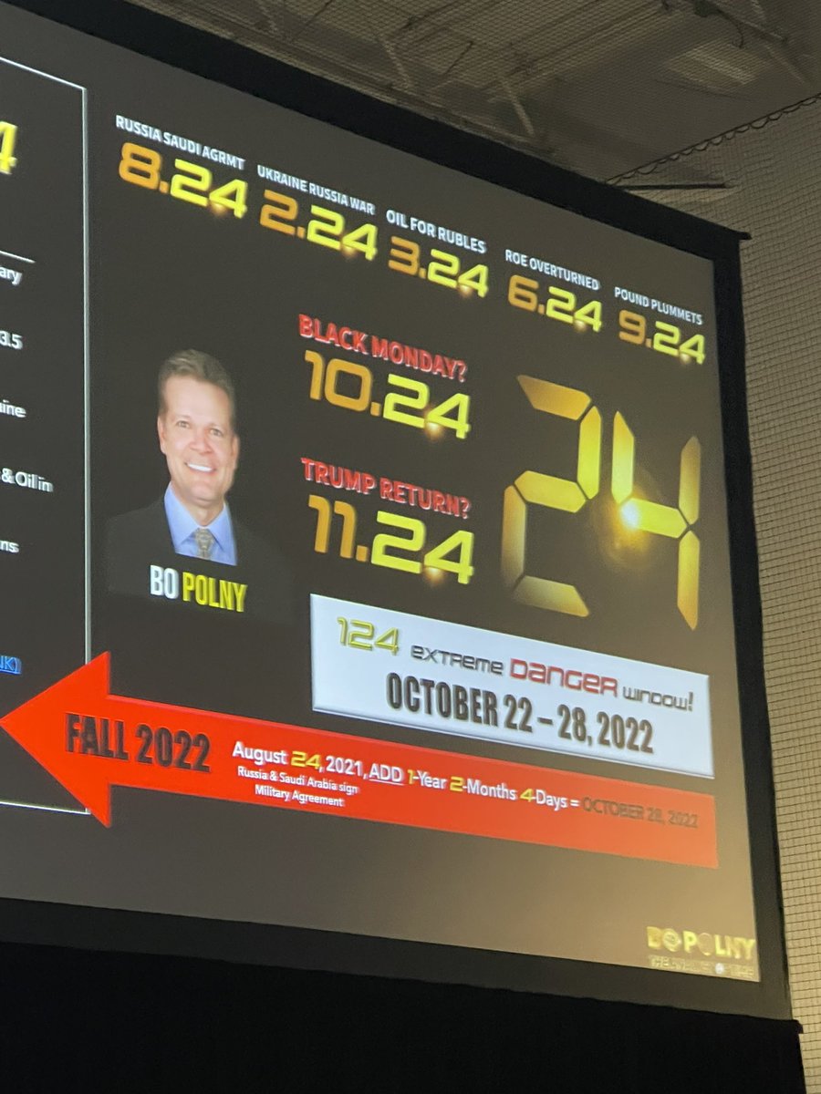 Crowd cheers as speaker Bo Polny declares prophecy that the “Angel of death” will be visiting these people by end of year