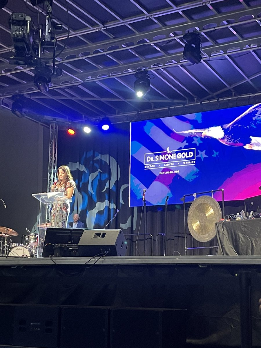 Now on stage: Simone Gold, a COVID denialist/anti-vax figure who went to prison for her involvement in Jan 6, and who was released last month