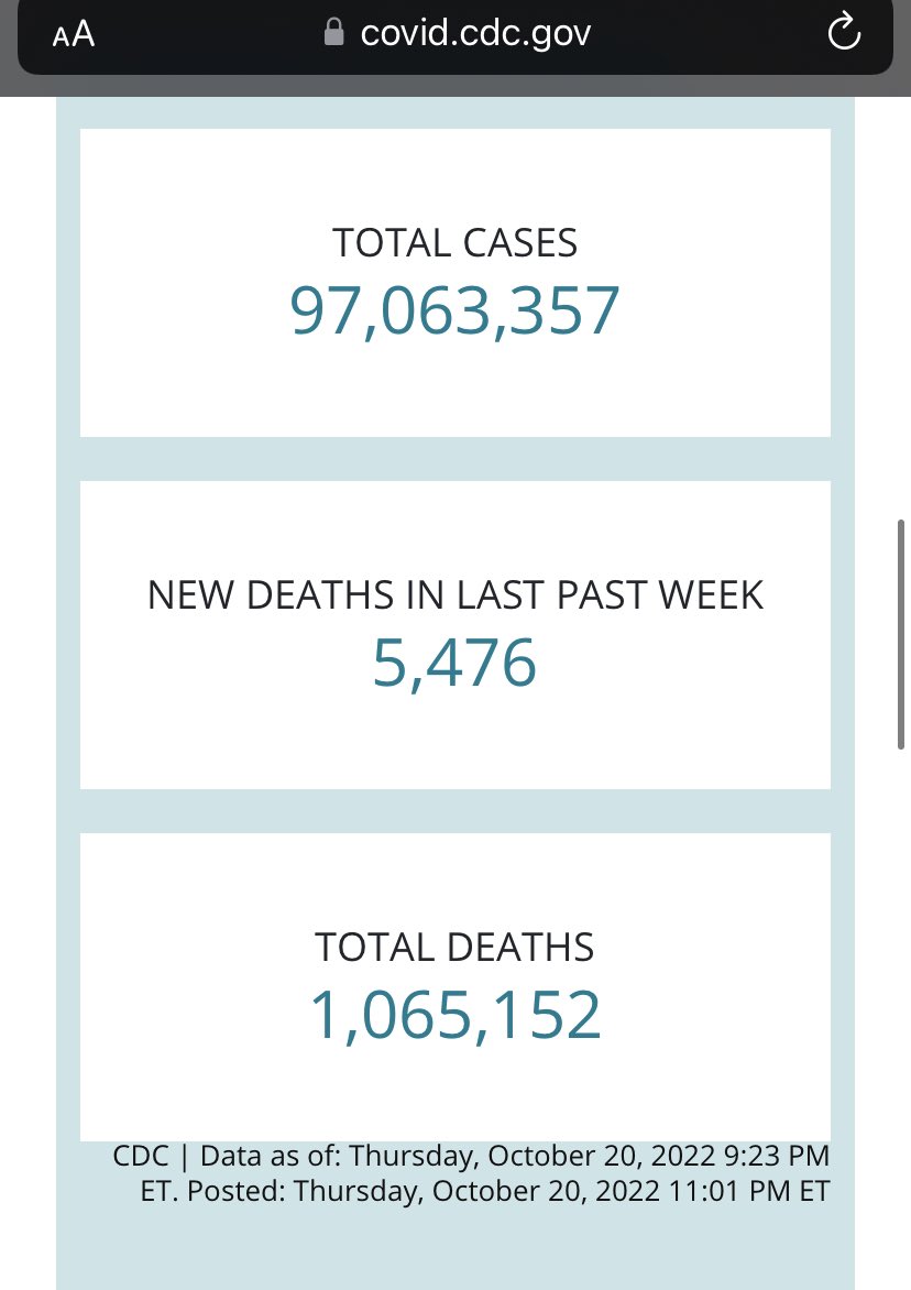From October 18th to October 20th, the CDC reported 260,881 new Covid cases and 5,476 new deaths (though it was 5,111 according to the difference in totals.)