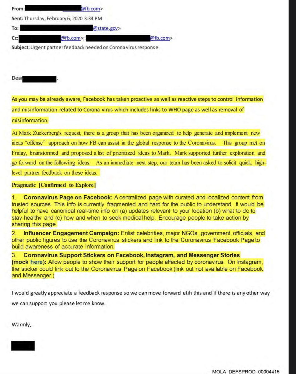 Discovery reveals everyone from the White House to the State Dept, DHS and even Census dictating Covid content rules to Facebook & others. nclalegal.org/wp-content/upl…