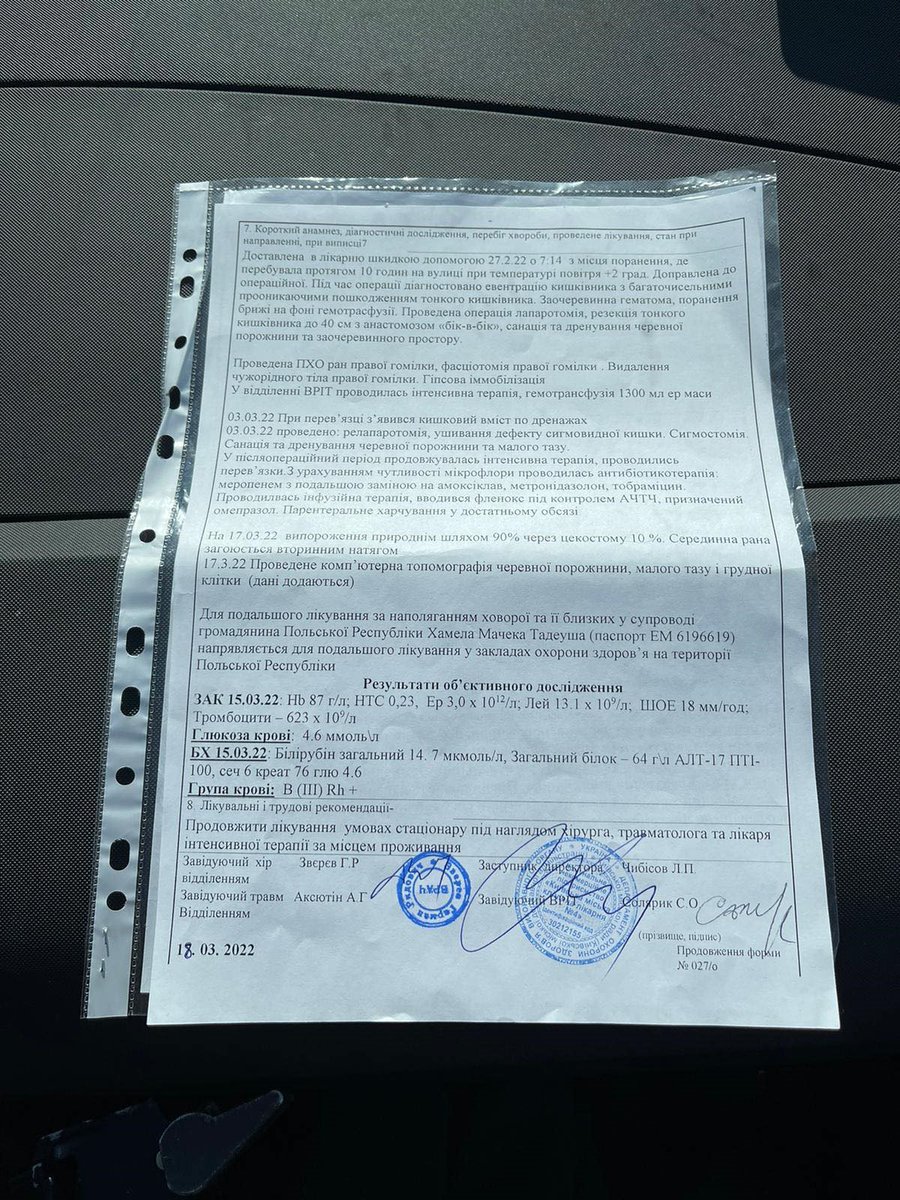 Here is medical proof of Russian war crimes in Ukraine. These materials were provided by a friend working on the Polish border. He treated a Congolese woman recently, who was in severe condition. I had the documents translated by a medical translator.