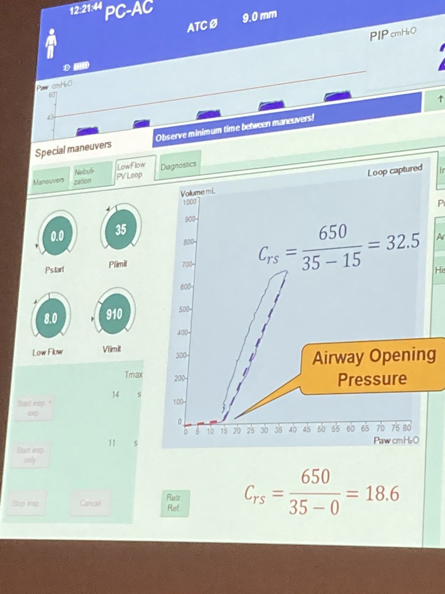 But bear in mind intrinsic PEEP. (Either visually determines that expiratory flow returns to 0 or measure exp hold ). Now *low flow PV loop*. Demonstrating that PV loop takes into account airway opening pressure. See pic for demonstration