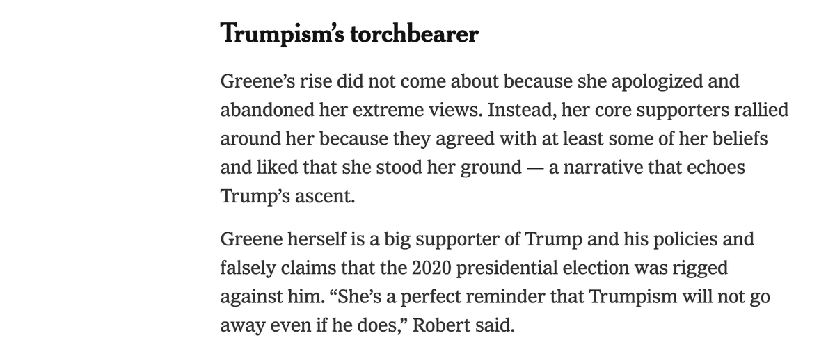 It is imperative to recognize that MTG, like Trump, is not aberration. She is from Georgia, where 75% of white women voters chose a white man - Brian Kemp - against Stacey Abrams in her campaign for governor in 2018. =