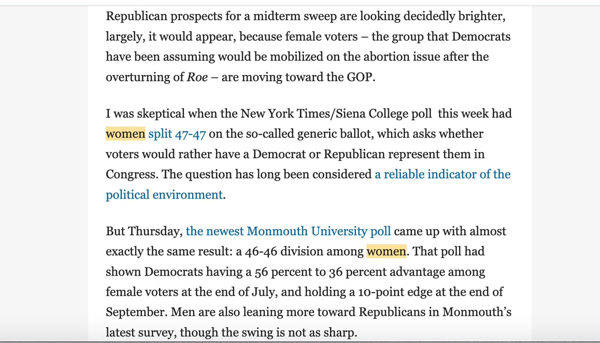 Voting patterns must be disaggregated by region and race because when they are, it is clear that white women do not overwhelmingly vote Democrat