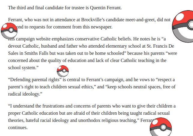I don’t know much about Christopher Cummings, but if you’re in Brockville, Smiths Falls, Leeds County, it seems like he’s the only choice for Catholic school trustee who isn’t a far-right clown. #onpoli#onted