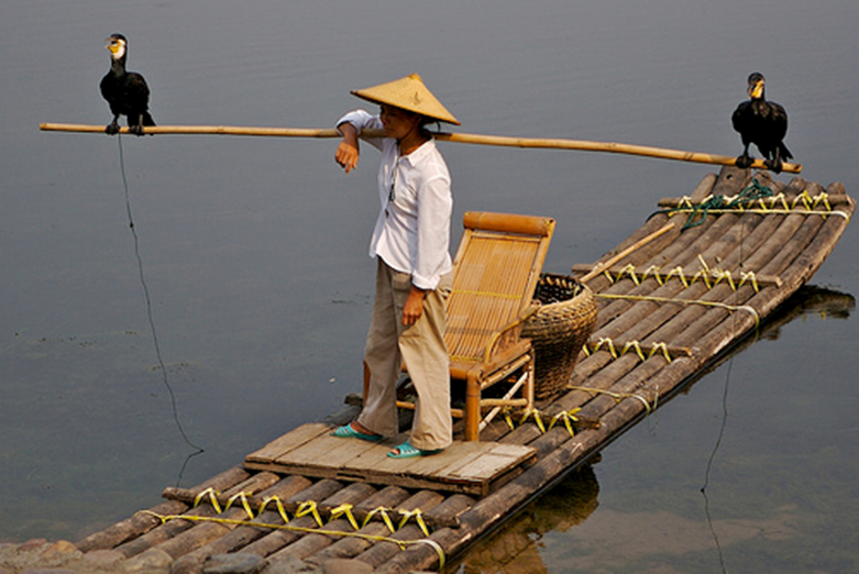 2/ Los cormoranes son magníficos nadadores y pescadores. Se zambullen tras su objetivo y pueden nadar a 4 m/s, mucho más veloces que sus presas. Desde el S.VII su uso como instrumento de pesca está documentado en China