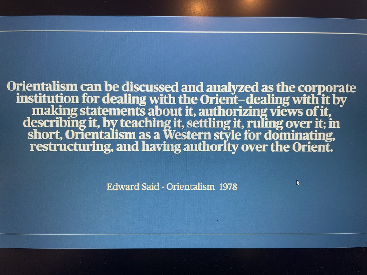 Expands our also into popular culture through inspiration for literature etc… Key analytical frame was idea of orientalism & archaeology’s role in extracting knowledge - viewing the east as ‘the other’ to be gained from. Bound up with visual art and books. #onwardsupwards2022