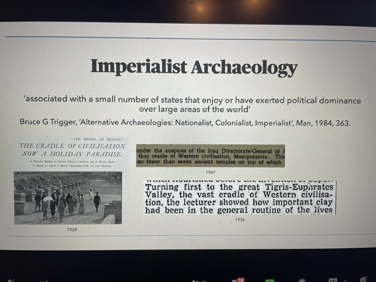 Archaeology becomes a way of ideologically & practically connecting to the bible & the cradle of civilisation. Victorian spectacular. The world on display so it can be connected to & consumed. Victorian interest in justifying its own imperialism. #onwardsupwards2022