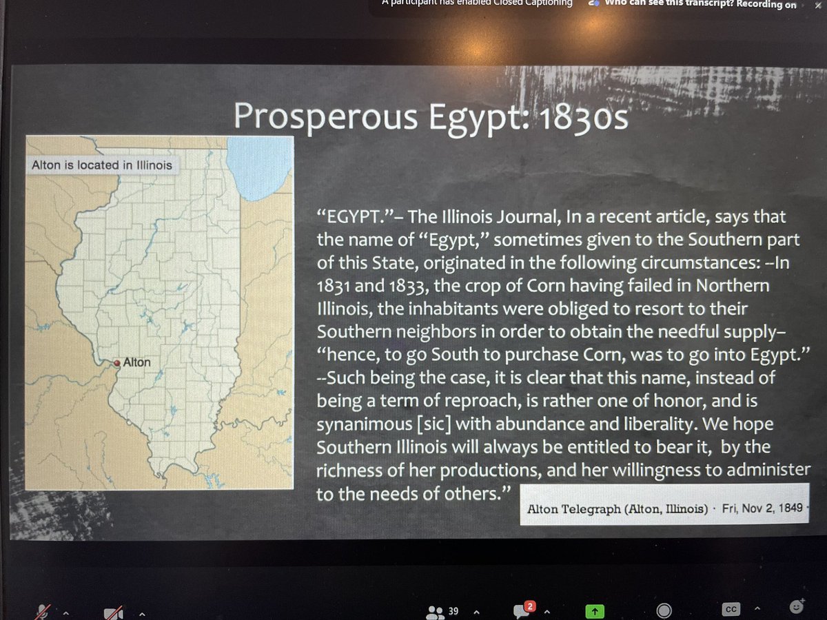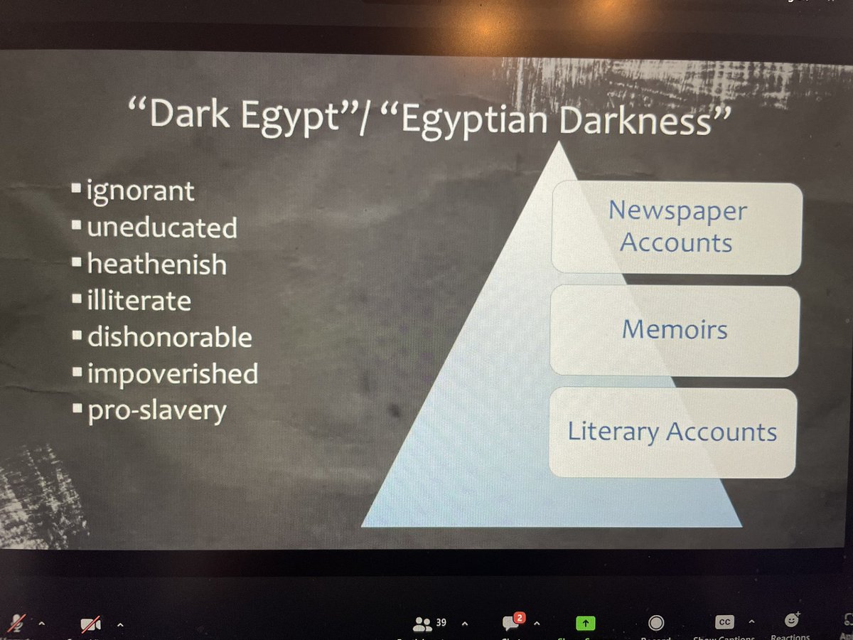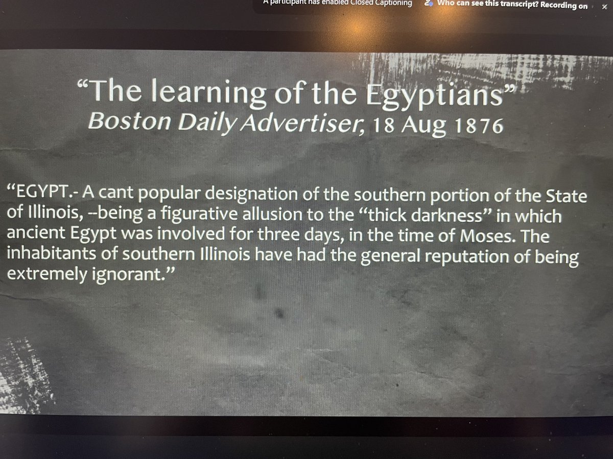 So interesting that people in southern Illinois referred to themselves as Egyptians in 19thC - came from reception not immigration. There was also a point the term ‘little Egypt’ began to be used despite social comment it shouldn’t. Some use of Egyptian names in towns & symbolism