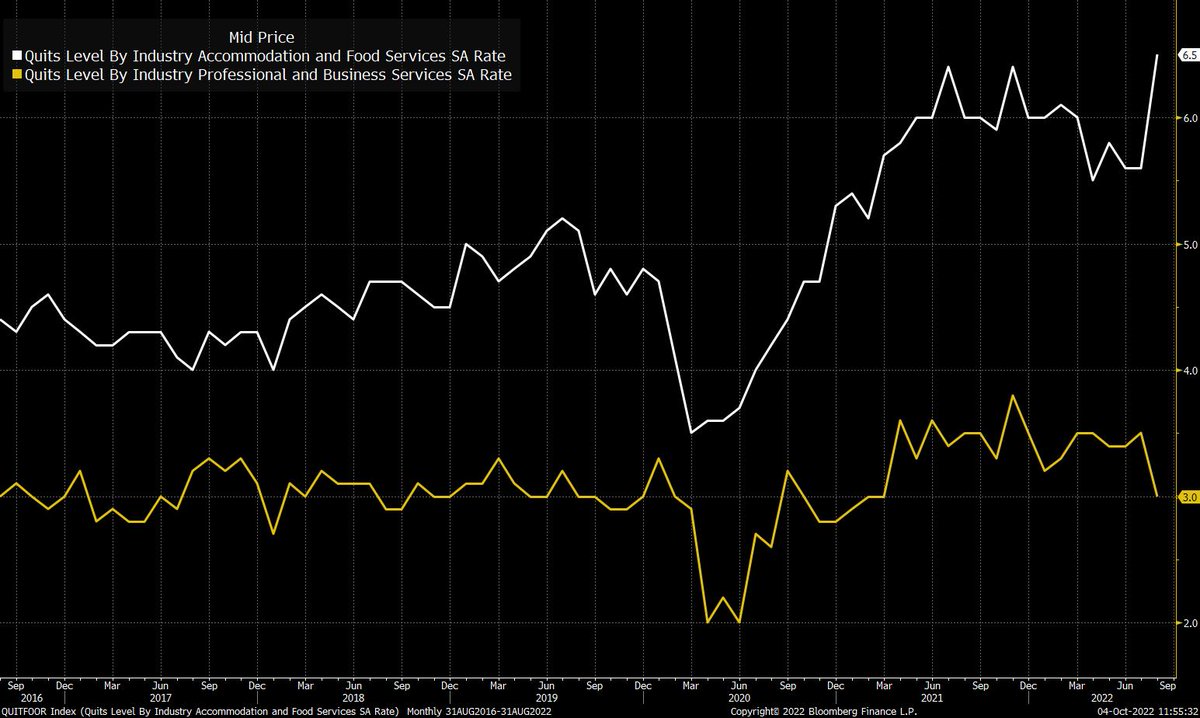 The quit rate at restaurants and hotels actually spiked in August.