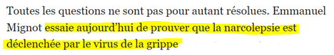 LA question est : qu’est-ce qui motive Emmanuel Mignot dans sa tentative de prouver que narcolepsie et grippe seraient liées ?