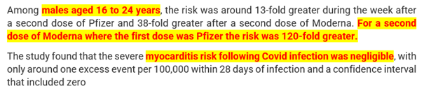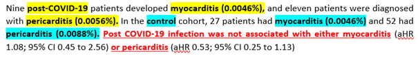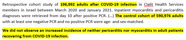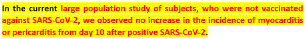 Donc l’argument, contestable en soit et criminel, de ceux qui refusent de se dédire et poussent toujours aux 💉 nous disant que l’incidence des myopéricardites est + faible avec les injections comparées à l’incidence provoquée par l’infection naturelle, est totalement FAUX !