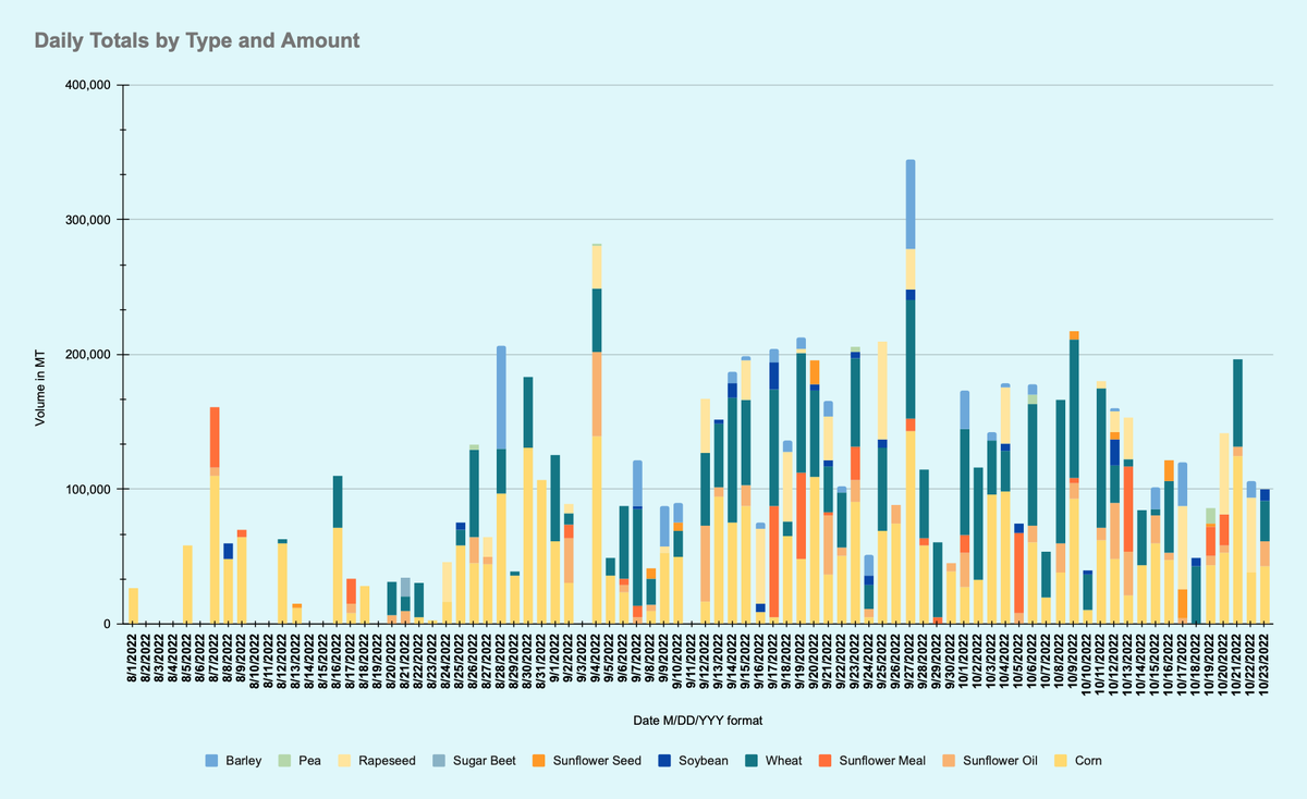 Nearly 50% of all grain delivered is corn and nearly half of all sunflower meal shipped has gone to China.