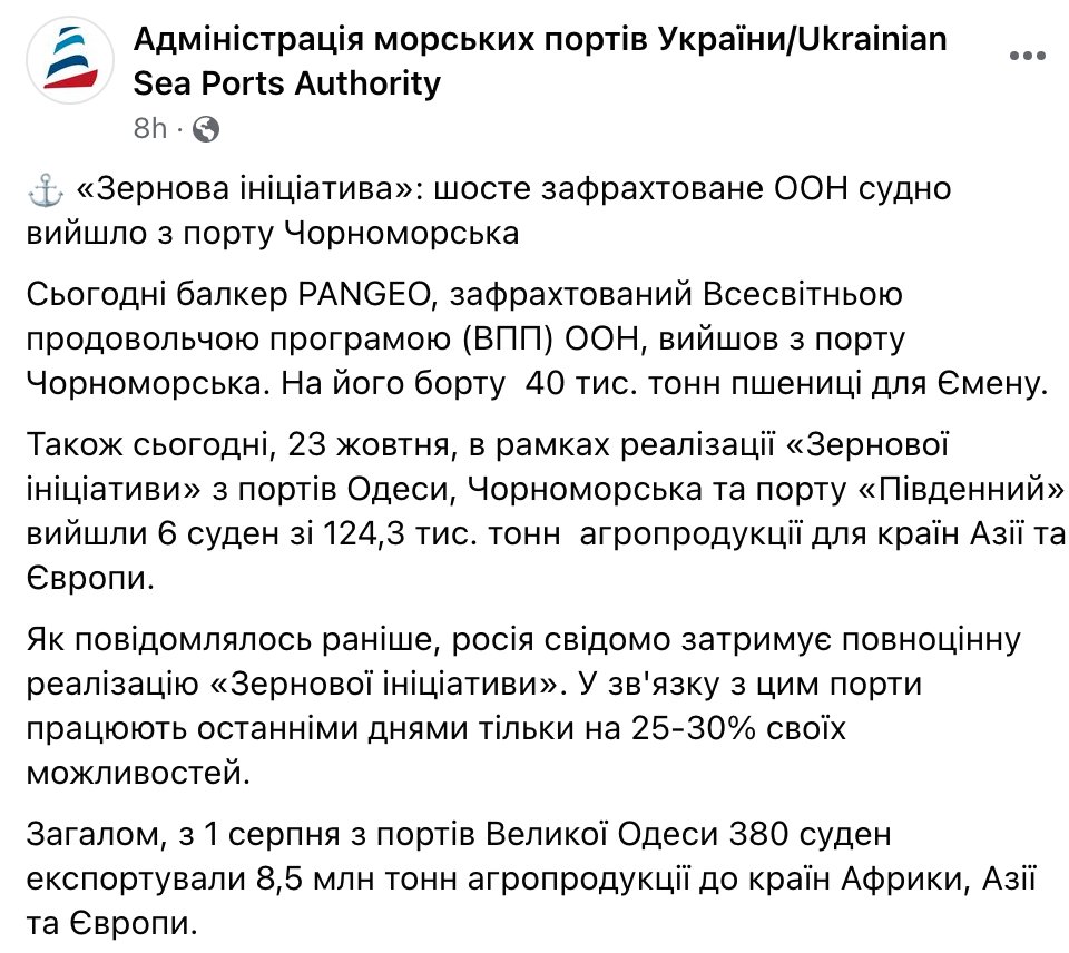 Numbers are all sorted and Pakistan has been added, that is now 40 different delivery countries where Ukrainian grain has landed.
