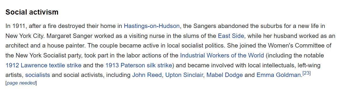 Sanger wasn't a WASP. She was born to Irish Catholic immigrant parents. She was also a socialist (with the line between socialist and Communist being basically nonexistent pre-October Revolution).