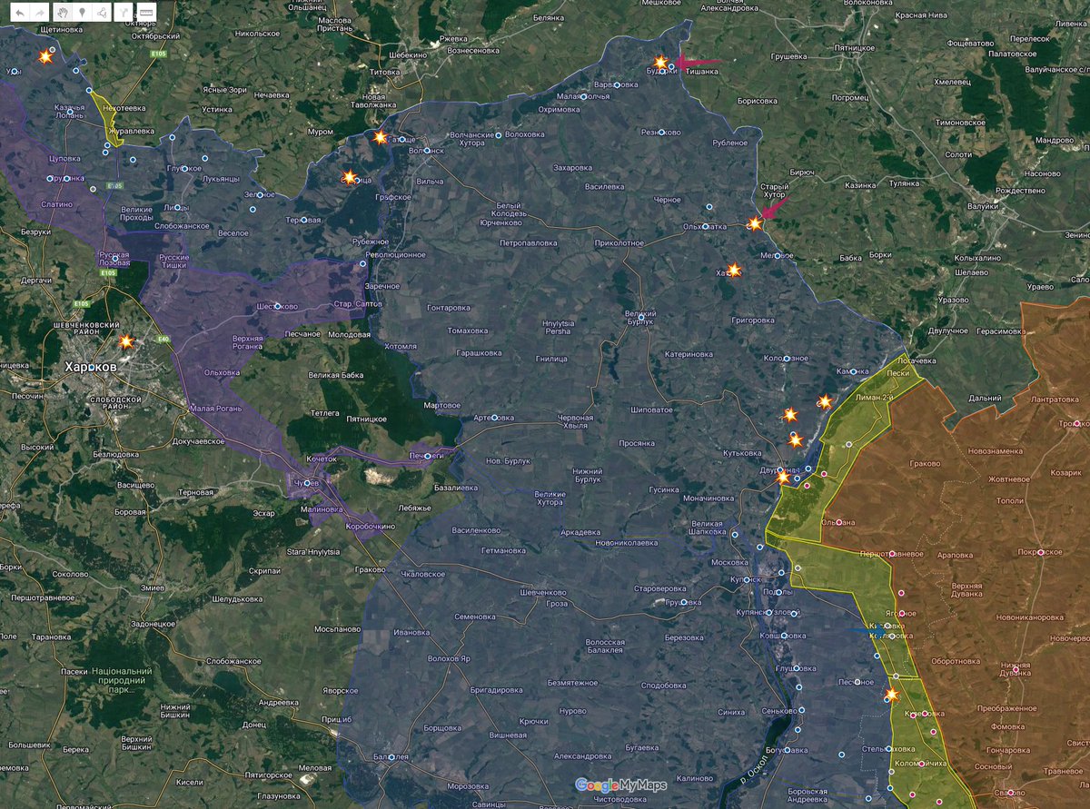 ВСУ отразили атаки рос войск на Огурцово, что на северной границе с РФ и Двуречное, что на левом берегу р. Оскол.