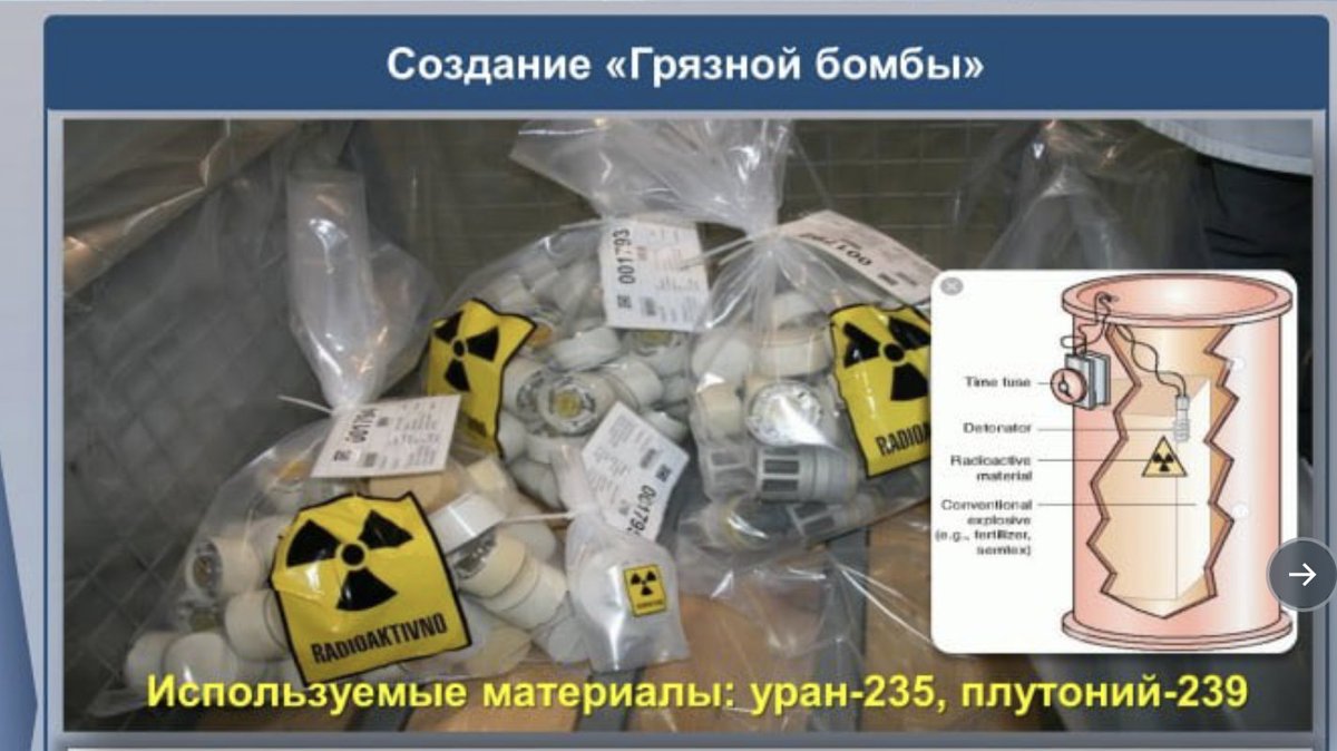 This image titled "Creation of Dirty Bomb" with the text "Used materials: uranium 235, plutonium 239" is first appears in a 2014 report on a training exercise and is unrelated to the text on the picture eng.ceti.me/?p=95
