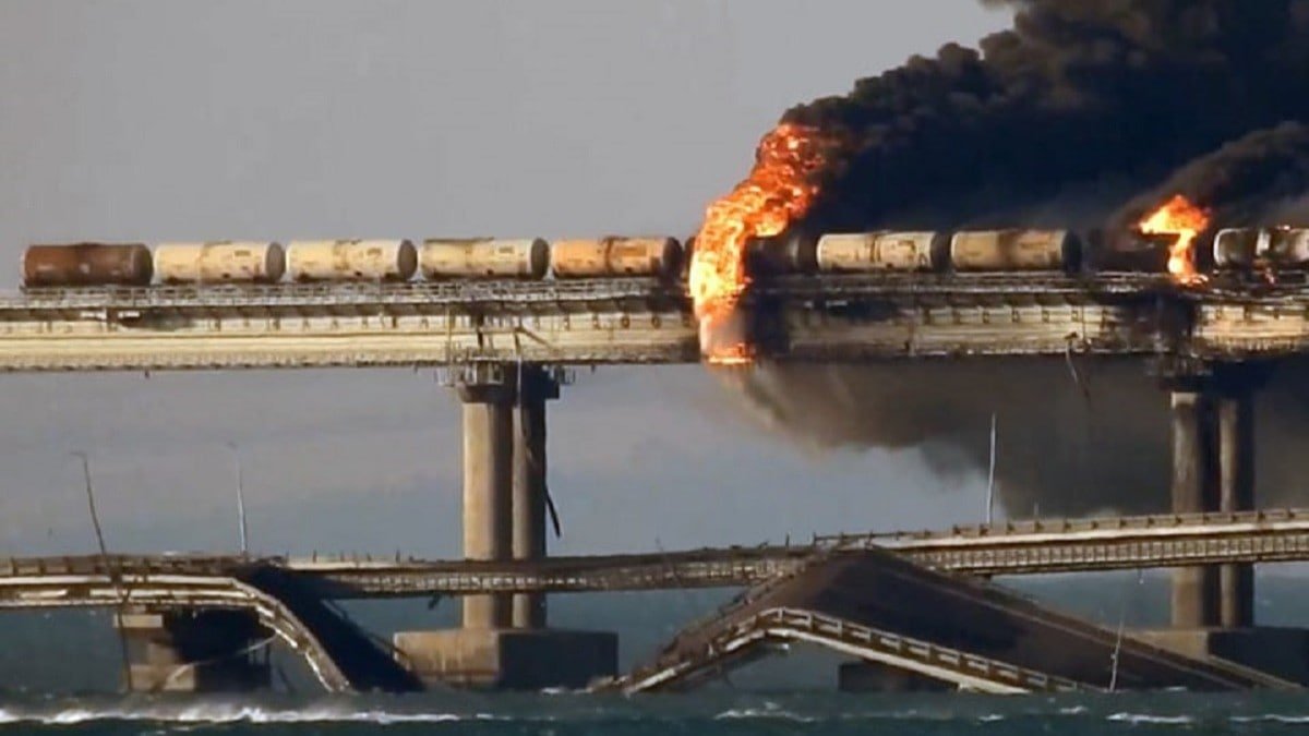 At the time of the explosion the wind at Kerch Airport 11km northwest of the blast site was blowing at around 19km/h from the ENE direction. This direction corresponds exactly with "right to left" on the bridge and explains why debris was moving in that direction as it came down.
