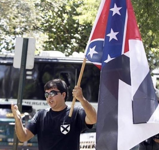 League of the South is a documented neo-confederate hate group and the photos of Reynaldo Cedano together with Christopher Monzon at a Gainesville demonstration come from this YouTube video.