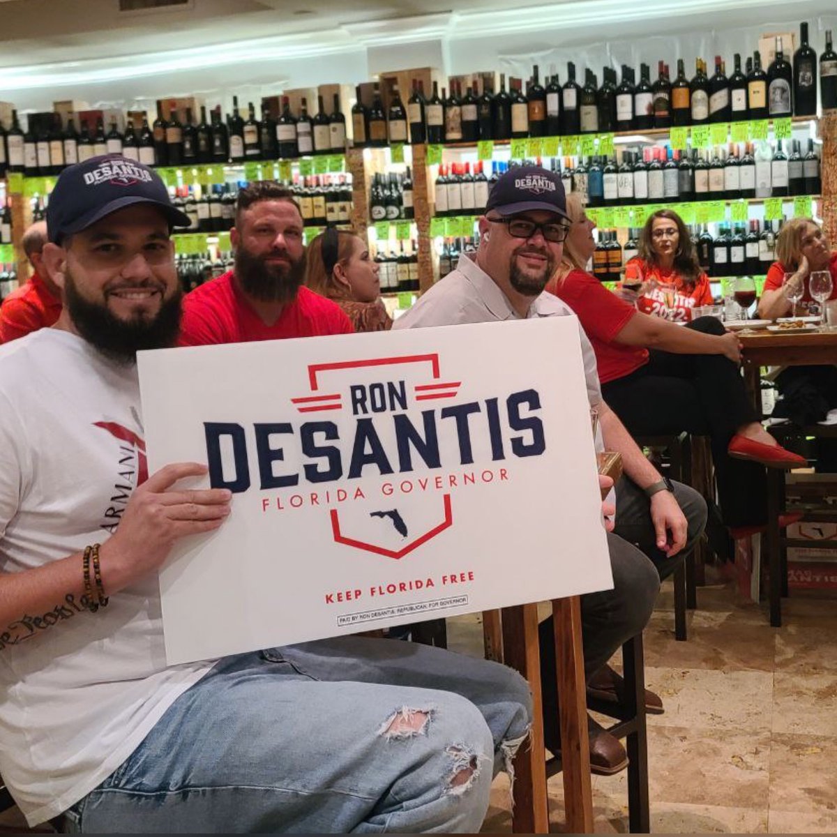Here’s Gabriel Garcia, Ozzy Perez-Cerezal and “Miami Lex” at a DeSantis debate watch party.