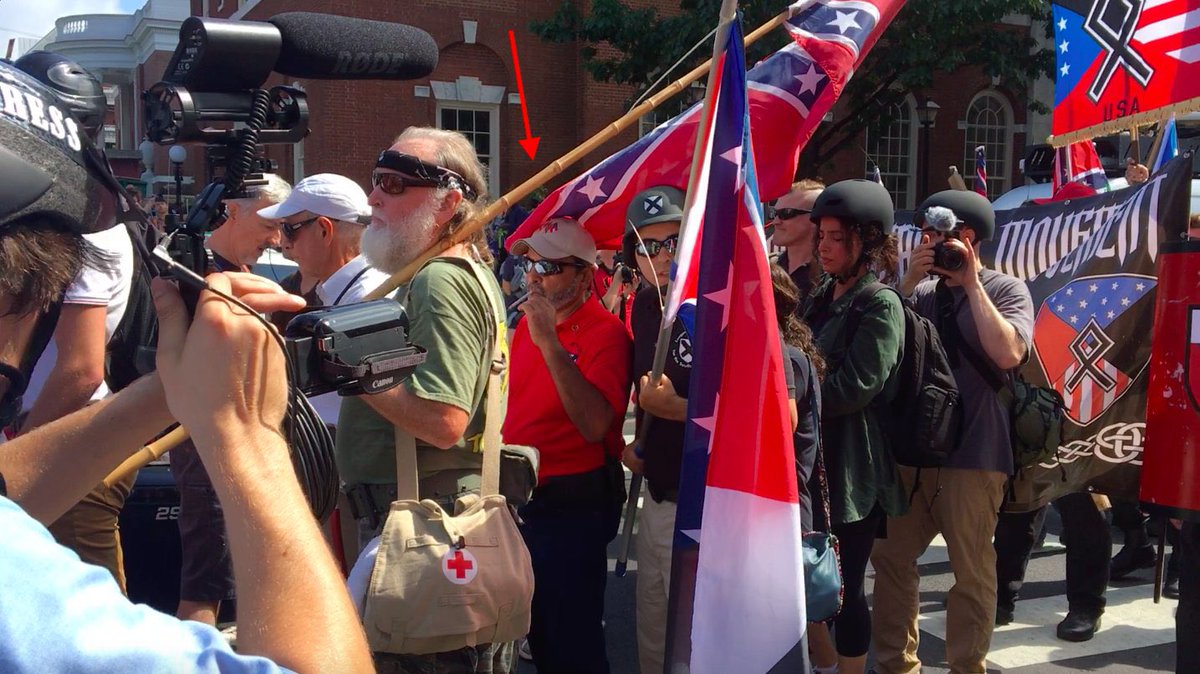 For those asking about the “mole” in Monzon’s UTR photo, check out this photo of him wearing the same glasses and a different League of the South shirt during a 2017 incident where attacked protesters with a confederate flag.