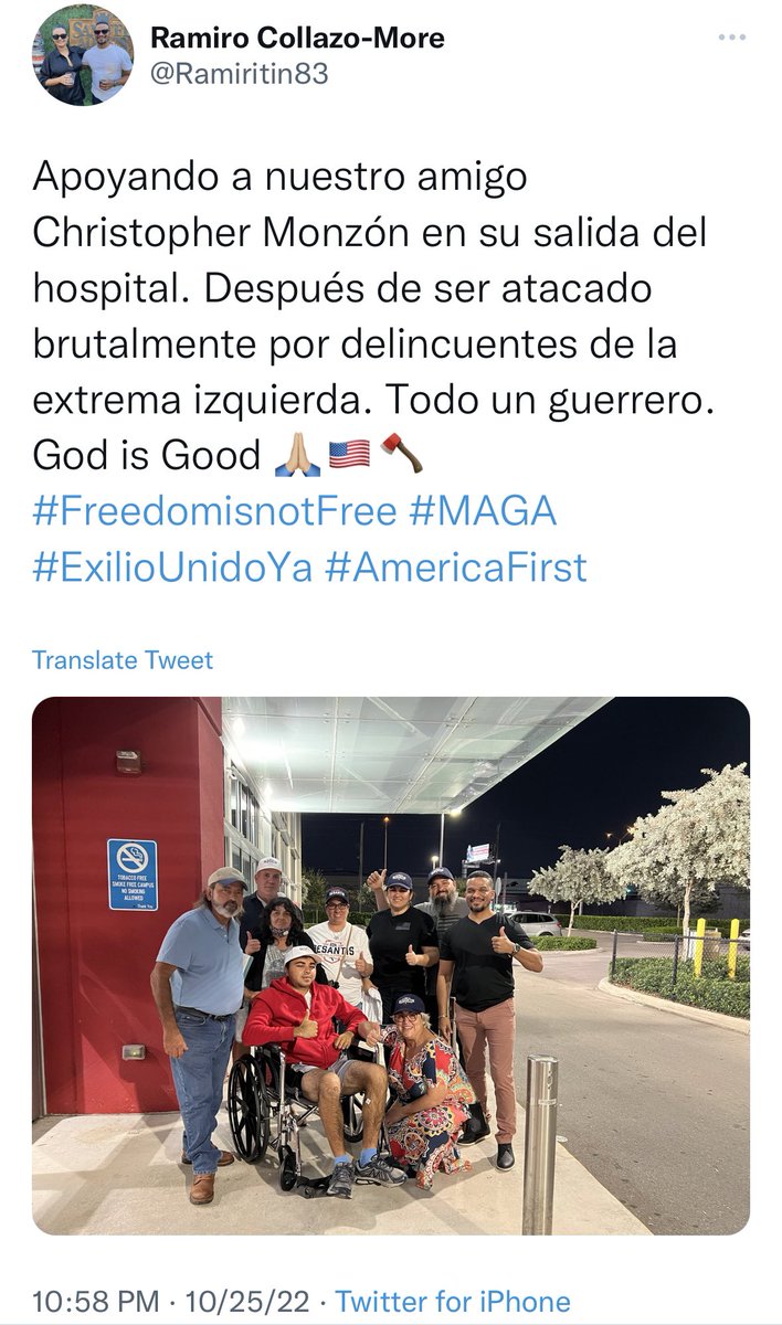 @MiamiDadeGOP Local media is reporting that Proud Boys Oswaldo "Ozzy" Perez-Cerezal and Gabriel Garcia are at the hospital with Christopher Monzon.