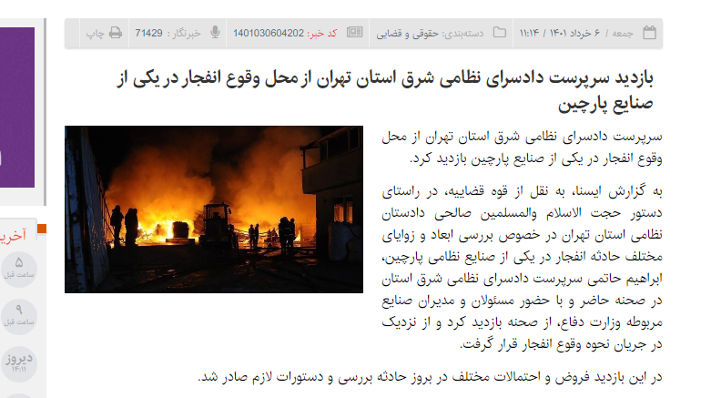 نکته اینجاست چند ساعت بعد از خبر انفجار دادستان نظامی تهران اعلام کرد که از منطقه انفجار بازدید کرده و دستورات لازم برای تحقیق درباره علت انفجار ر و صادر کرده/