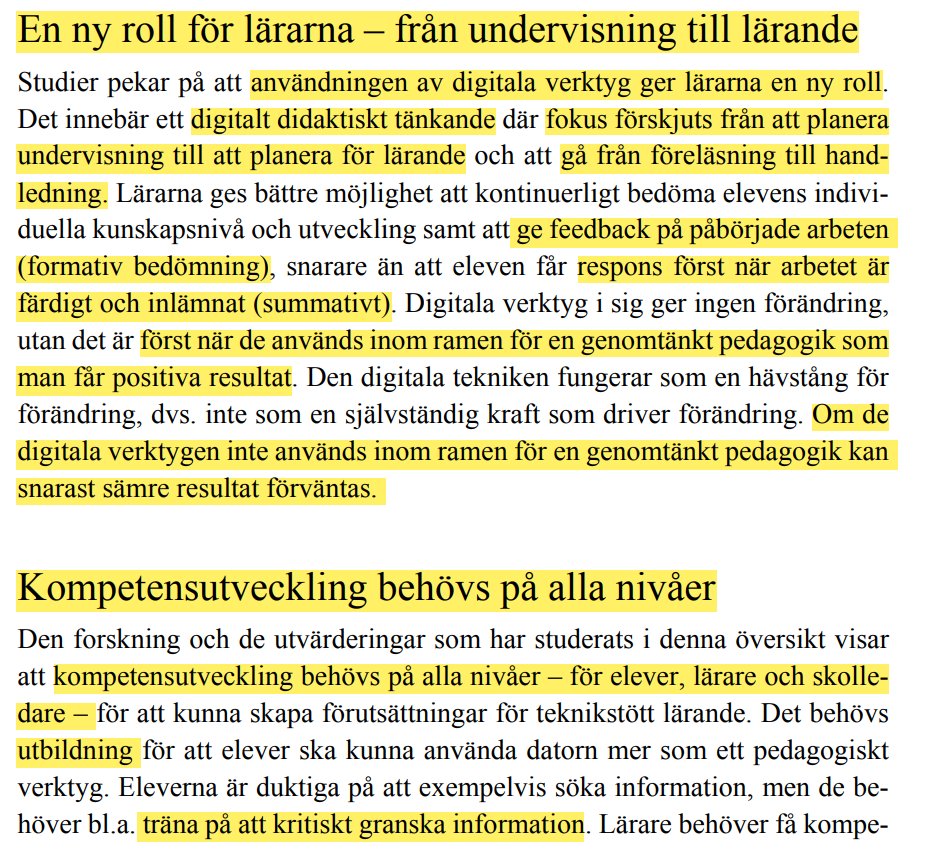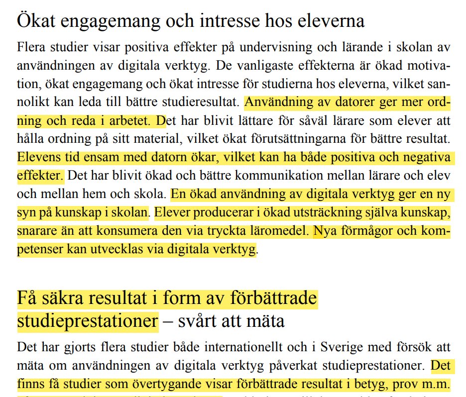 Skolinspektionen hävdar att användningen av digitala verktyg ger positiva effekter på undervisning och lärande och hänvisar till en forskningsöversikt om digitala verktyg i skolan.