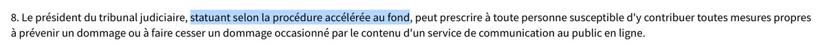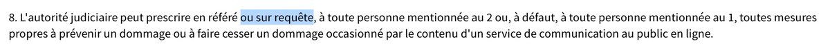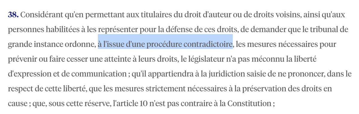 D'ailleurs, l'article 6 I 8 #LCEN traitant du blocage finira par être patché en 2021 pour supprimer un motif de QPC, en supprimant toute possibilité de recours à une procédure non contradictoire