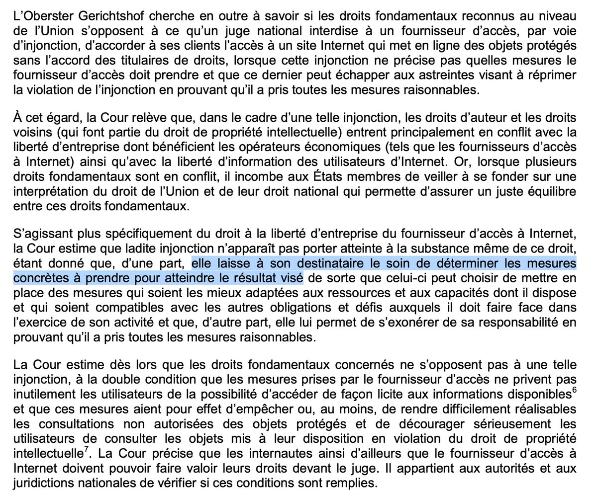 En second lieu, liberté d'entreprendre oblige, les FAIs ont la liberté de choix de la technologie de blocage : en clair, on ne peut utiliser l'arme atomique pour combattre un moustique curia.europa.eu/juris/document…