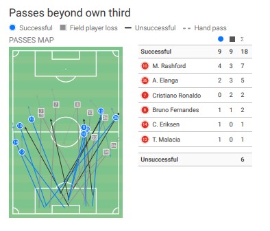 - Dalot and Antony creating space out wide using Dalot as an inverted full-back