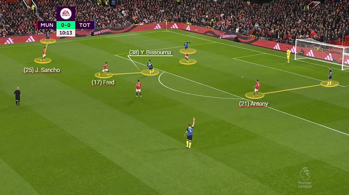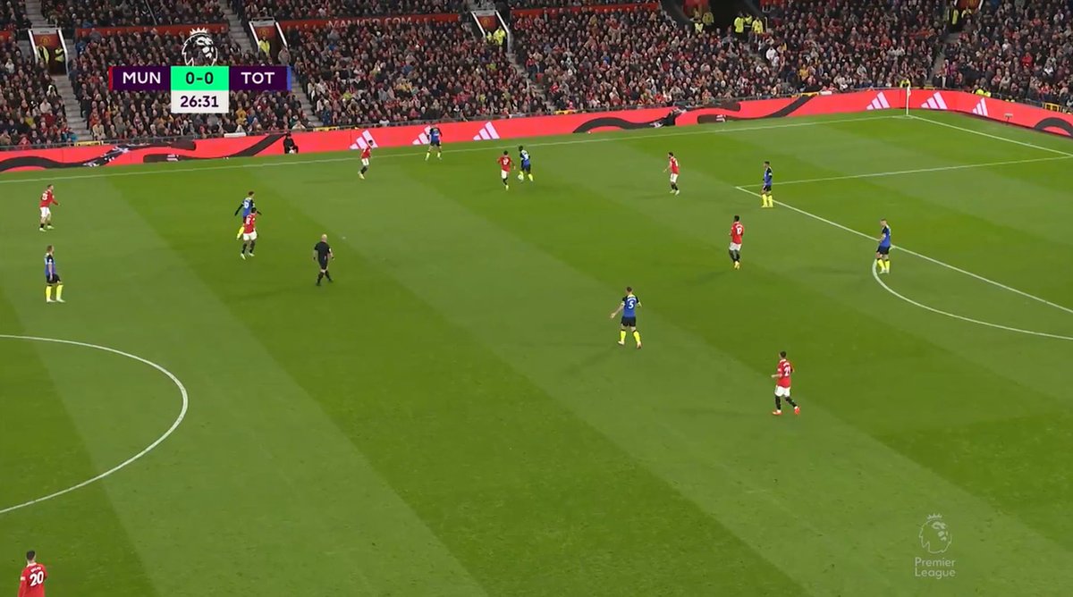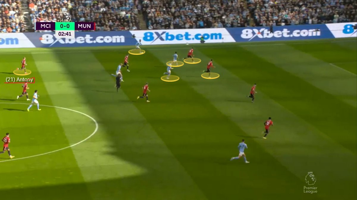 The disciplined, organised structure out of possession is a massive boost for United under Ten Hag in only 3 months. As it isn't the 1st time they have been able to halt a team building up smoothly from the back by limiting the centre of the pitch, restricting teams playing out