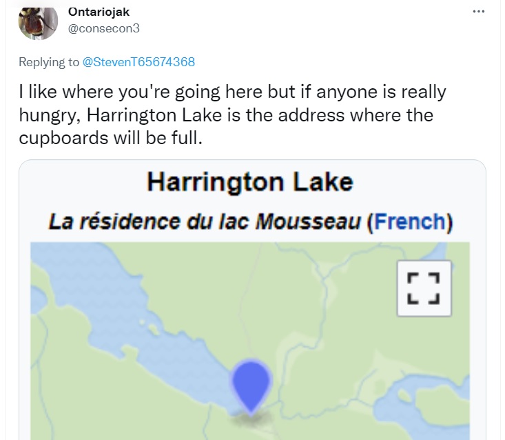 "Several families came in the 19th century to settle the Harrington Lake area, including the Harrington and the Mousseau families. The lake eventually became known as "Harrington Lake" in English and "lac Mousseau" in French" - Wiki