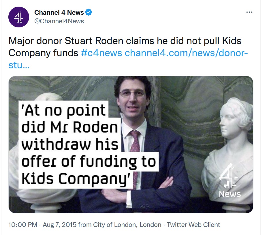 "The charity’s founder Camila Batmanghelidjh had said the offer of funding was reversed after Scotland Yard announced their child abuse unit was investigating the charity."