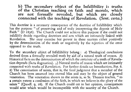 In order to illustrate commonly accepted limits to papal infallibility, I thought I'd post a few screenshots of Ludwig Ott's section on infallibility.