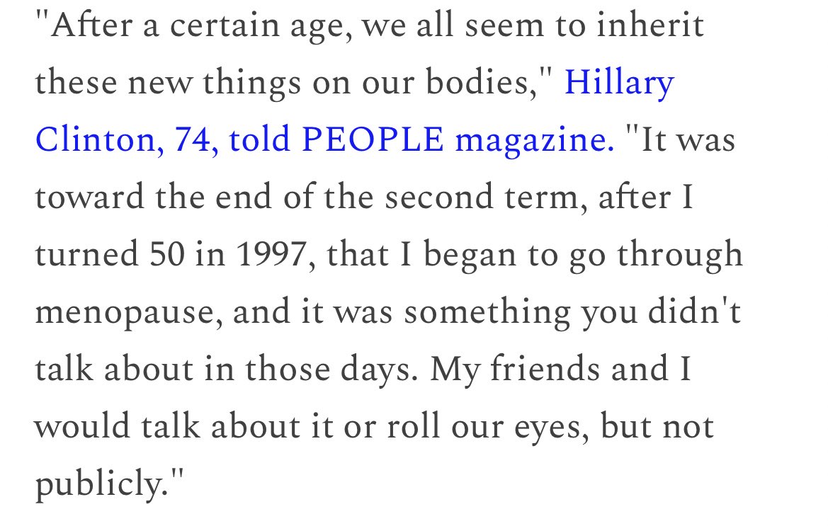 “And yet I can’t find anybody that has spoken about it and that would help me, I think, if I could go and hear or read somebody who had the same kind of anxieties that I have about the very public nature of the job.” feministgiant.com/p/essay-the-po…#menopause