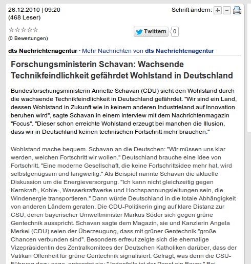 Nichtsdestotrotz kriege ich alle paar Tage einen Google Alert: Eine Benachrichtigung, dass im Bundestag, in einem Blog oder einer Tageszeitung vor zu viel "Technikfeindlichkeit" gewarnt wurde.