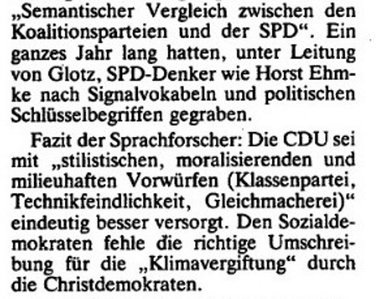 Zumindest in Teilen der SPD wurde dies damals übrigens ernsthaft diskutiert. So analysierte im Vorfeld der BTW 1987 eine "Sprachkommission" die Semantik der Union - und versuchte Schwachstellen der SPD zu identifizieren: spiegel.de/politik/heimat…