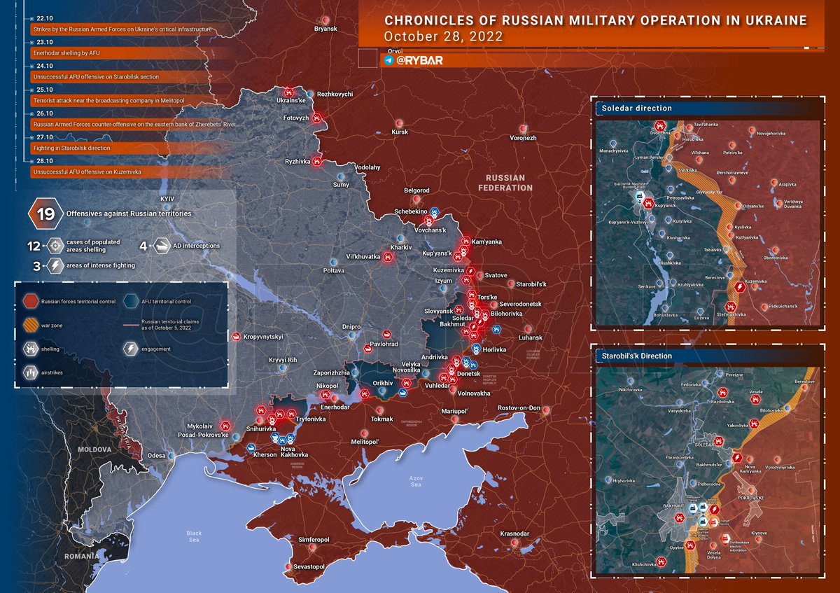 π·πΊπΊπ¦ Chronicle of Strikes and Mutual Fires in the SMO Zone during the night of October 27-28, 2022