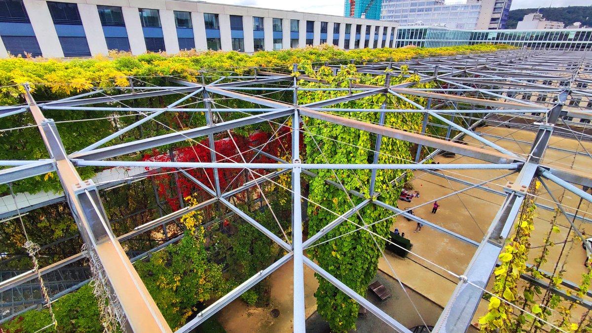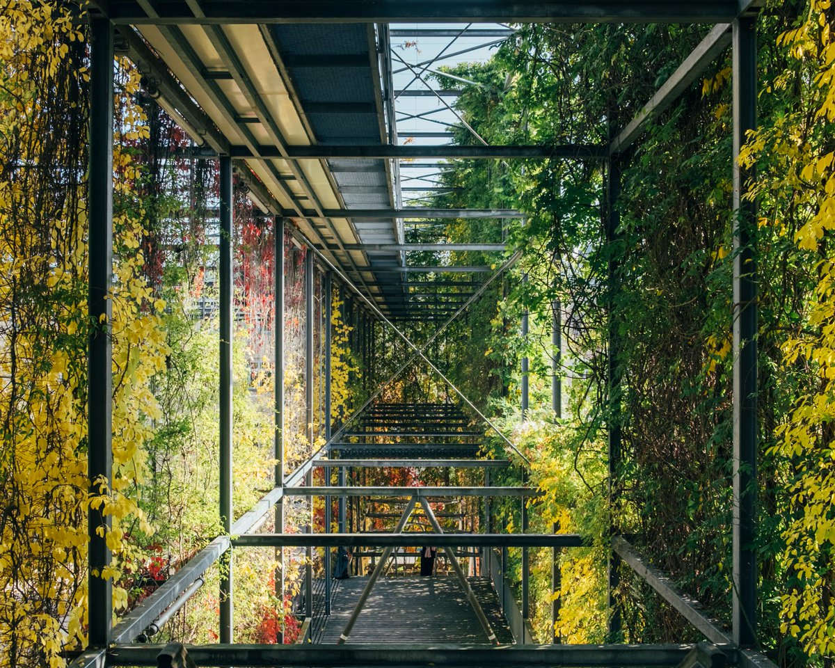 A pocos pasos de la torre, en esa zona industrial, está el parque MFO, un descomunal tejido vegetal que se levanta como un bosque urbano.