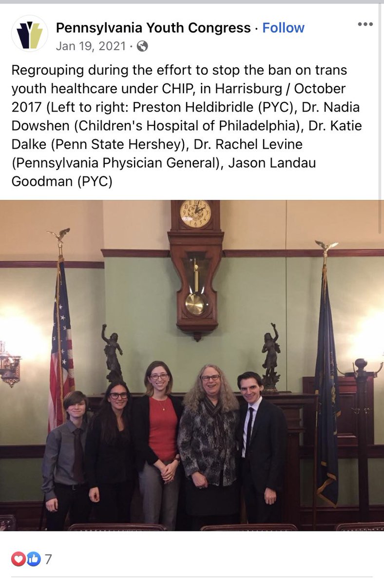 Rachel Levine, Nadia Dowshen (CHOP) and the PA Youth Congress were part of Rachel Levine’s state LGBTQ+ workgroup. They worked together to stop HB 1933, a bill that prohibited the use of taxpayer dollars to provide gender surgery or gender transitions services through CHIP.