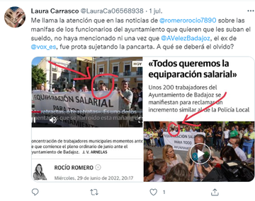 12. – Tweets señalando a periodista por no destacar en una noticia que el concejal de VOX apoyaba una protesta -para deslegitimar la protesta- y publicaciones de las calles sucias (concejal de VOX es responsable de Limpieza)