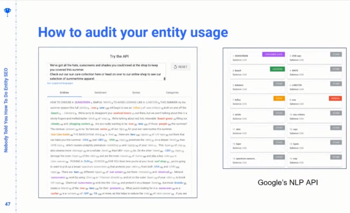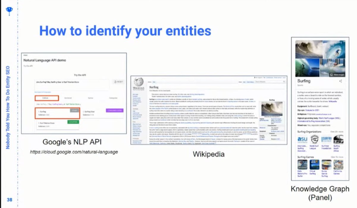 ❯ Note: Just because Google doesn’t identify a wikidata ID or Wikipedia article in its named entity recognition, doesn’t mean Google doesn’t understand it’s an entity – @ruthburr