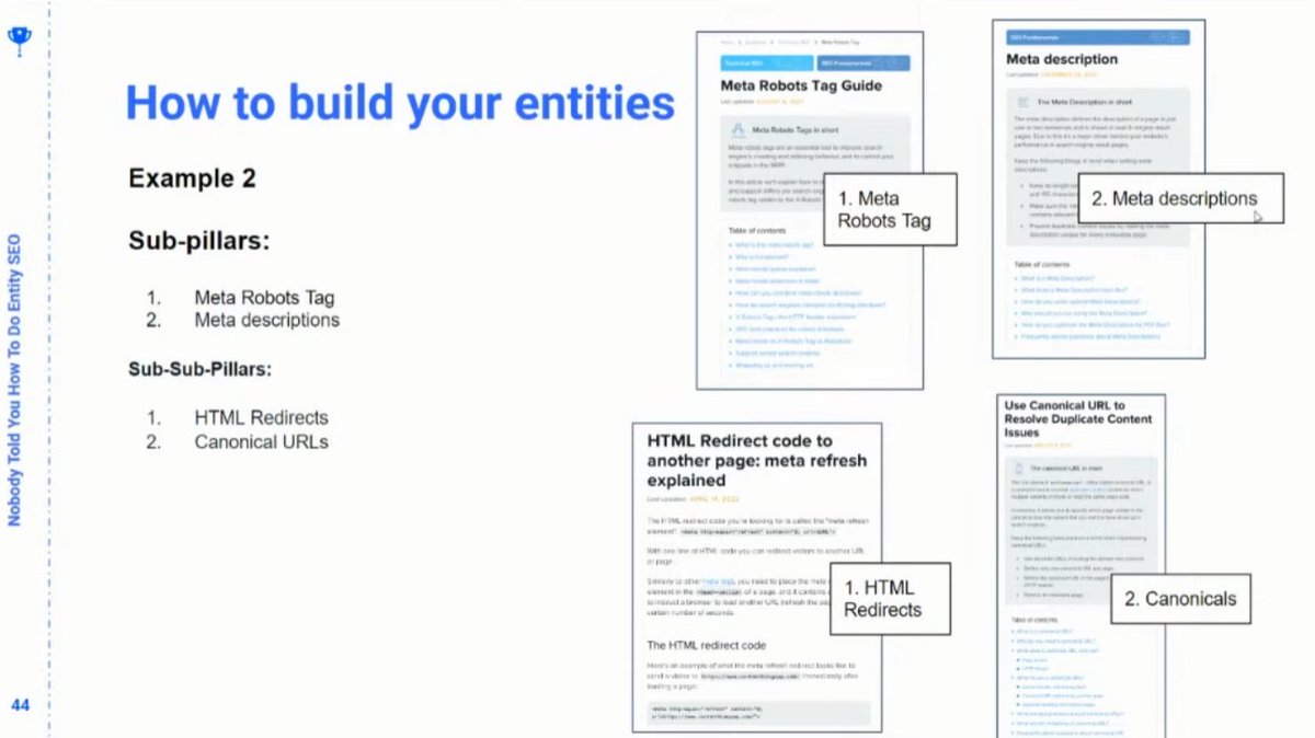 ❯ You don’t really want the “Ultimate Guide” content. For an entity-based strategy, you want to know where the related entities need to go and lead to sub-pillar pages