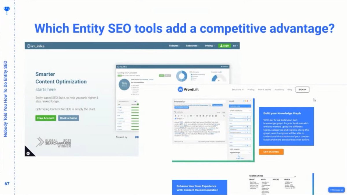 Parting Thoughts: @wordliftit, @InLinks, definitely. Also, just mess around with Wikidata, put in your queries and see what comes back so you get more familiar with them when you start your keyword research and start writing. – @iPullRank