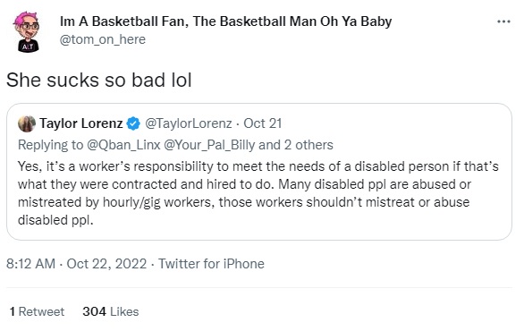 On Chapo Trap House, where they start by talking about the Jorts The Cat controversy, Matt Christman claims that all Instacart shoppers "are online all day talking about their fucking fake disabilities", contrasting with Instacart workers who "have to fucking work for a living".